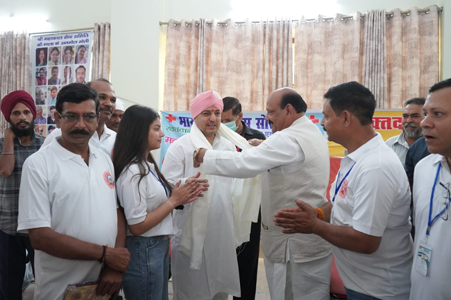 यूथ रेडक्रास कमेटी के चेयरमैन अनिल वर्मा ने कहा कि हमारा थोड़ा सा रक्त और थोड़ा सा वक्त यदि किसी मृतप्राय व्यक्ति को जीवनदान देकर उसकी व उसके परिवार की खुशियां लौटा सकता है। हमें ऐसा पुनीत कार्य अवश्य करना चाहिए। श्री महाकाल सेवा समिति के अध्यक्ष रोशन राणा ने कहा कि ब्लड बैंकों में रक्त की आवश्यकता लगातार बनी रहती है। इसी उद्देश्य की पूर्ति को दृष्टिगत रखते हुए हमारी सेवा समिति प्रत्येक तीन माह के अंतराल पर लगातार रक्तदान शिविरों का आयोजन करती है। इसमें परम महंत देवेंद्र दास महाराज आशीर्वाद तथा श्रीमहंत इंद्रेश ब्लड बैंक के समन्वयक अमित चन्द्रा व टीम का साथ सफल संचालन के लिए डॉ. नितिन अग्रवाल, डॉ. पुनीत जैन, कृतिका राणा, अनुष्का राणा, हेमराज अरोड़ा, आलोक जैन, पुनीत जैन, राकेश आनंद, सचिन आनंद, सचिन जैन, राहुल माटा, सागर खरबंदा, संजीव गुप्ता, के शर्मा, रविंद्र तथा अक्षत नागलिया का विशेष योगदान रहा। इस मौके पर महानगर देहरादून कांग्रेस के पूर्व अध्यक्ष लालचंद शर्मा ने देवेंद्र दास महाराज को शोल ओढ़ाकर स्वागत किया।नोटः सच का साथ देने में हमारा साथी बनिए। यदि आप लोकसाक्ष्य की खबरों को नियमित रूप से पढ़ना चाहते हैं तो नीचे दिए गए आप्शन से हमारे फेसबुक पेज या व्हाट्सएप ग्रुप से जुड़ सकते हैं, बस आपको एक क्लिक करना है। यदि खबर अच्छी लगे तो आप फेसबुक या व्हाट्सएप में शेयर भी कर सकते हो।