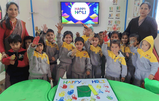स्कूल प्रबंधन द्वारा आयोजित होली मिलन समारोह में शिक्षिकाओं ने सभी बच्चों का स्वागत अबीर का टीका लगाकर किया। बच्चों ने होली के गीतों पर मनमोहक नृत्य प्रस्तुत किए और पूरे परिसर को रंगमय बना दिया। इस अवसर पर बच्चों से पाम पेंटिंग व क्राफ्ट गतिविधियां करवाई गईं तथा होली से जुड़े रोचक खेल भी आयोजित किए गए। विद्यालय को आकर्षक होली थीम से सजाया गया था, जिससे वातावरण और भी उत्सवमय हो उठा। (खबर जारी, अगले पैरे में देखिए)