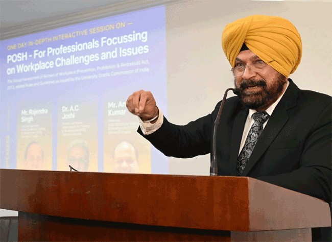 सत्र को संबोधित करते हुए मुख्य अतिथि इंडियन सोसाइटी फॉर ट्रेनिंग एंड डेवलपमेंट (आईएसटीडी) देहरादून चैप्टर के निदेशक डा. एसी जोशी ने कहा कि पौष अधिनियम केवल एक कानूनी प्रावधान नहीं, बल्कि कार्यस्थल पर सुरक्षा, सम्मान और समानता सुनिश्चित करने की एक मजबूत पहल है। इसे हर व्यक्ति को समझना और अपनाना आवश्यक है। उन्होंने प्रेजेंटेशन के माध्यम से पौष से जुड़ी जानकारी दी और ऐसे मामलों से निपटने के उपाय, शिकायत प्रक्रिया और जागरूकता के महत्व पर प्रकाश डाला। (खबर जारी, अगले पैरे में देखिए)