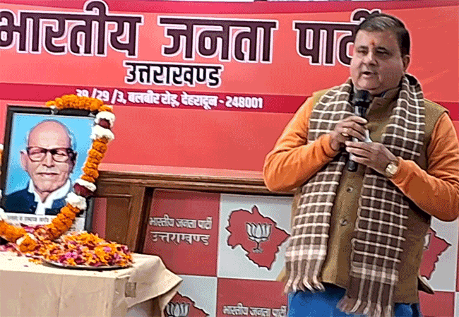 देहरादून में बीजेपी के प्रदेश मुख्यालय में हुए इस कार्यक्रम में बड़ी संख्या में पार्टी पदाधिकारियों एवं जनप्रतिनिधियों ने स्वर्गीय शास्त्री जी के चित्र पर पुष्पांजलि देकर उन्हें याद किया। इस दौरान अपने संबोधन में महेंद्र भट्ट ने कहा कि देवेंद्र शास्त्री जनसंघ और भाजपा के संस्थापक सदस्य के साथ उत्तराखंड से आरएसएस के पहले प्रचारक और अलग राज्य की अवधारणा को रखने वालों में शामिल रहे हैं। (खबर जारी, अगले पैरे में देखिए)