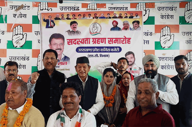 देहरादून में कांग्रेस के प्रदेश मुख्यालय में आज आयोजित कार्यक्रम में सदस्यता अभियान चलाया गया। ये अभियान उत्तराखंड प्रदेश कांग्रेस अनुसूचित जाति विभाग अध्यक्ष मदन लाल के अगुवाई में चलाया गया। इस मौके पर कार्यक्रम के मुख्य अतिथि एवं प्रदेश के पूर्व मुख्यमंत्री हरीश रावत ने कहा कि प्रदेश की जनता अब सत्ता परिवर्तन चाहती है। उसको कांग्रेस की याद आ रही है। क्योंकि जनता ने कांग्रेस की सरकारें देखी हैं, जिनमें युवाओं को रोजगार मिला। बुजुर्गों को पेंशन मिली, गरीबों को सस्ता अनाज मिला, वंचितों को न्याय मिला। (खबर जारी, अगले पैरे में देखिए)