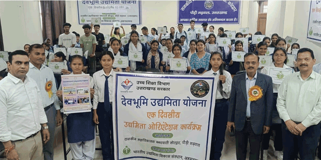 उत्तराखंड के पौड़ी जिले में स्थित राजकीय महाविद्यालय कण्वघाटी कोटद्वार में देवभूमि उद्यमिता केंद्र, उच्च शिक्षा विभाग के साथ ही भारतीय उद्यमिता विकास संस्थान अहमदाबाद के संयुक्त तत्वावधान में एक दिवसीय ओरिएंटेशन कार्यक्रम का आयोजन किया गया। इसमें छात्रों को उद्यमिता के लिए प्रोत्साहित किया गया। (खबर जारी, अगले पैरे में देखिए)