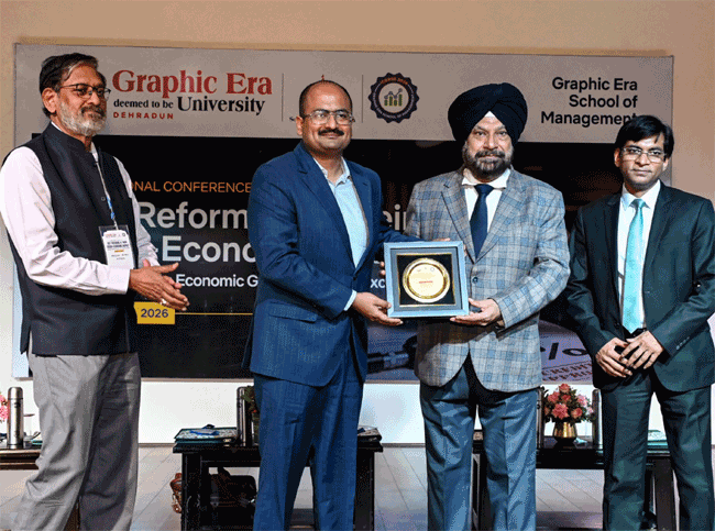 देहरादून स्थित ग्राफिक एरा डीम्ड यूनिवर्सिटी में आज से जीएसटी सुधारों के सामाजिक और आर्थिक प्रभावों पर दो दिवसीय अंतर्राष्ट्रीय सम्मेलन शुरू हो गया है। इसमें में देश – विदेश के विशेषज्ञ जीएसटी सुधारों, आर्थिक विकास और समाज पर उनके प्रभावों पर चर्चा कर रहें हैं। (खबर जारी, अगले पैरे में देखिए)