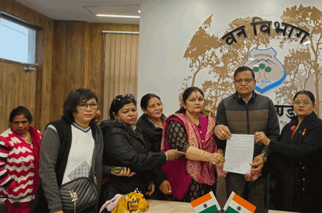 महिला कांग्रेस ने वन्य जीवों के आतंक से निजात दिलने को लेकर वन मुख्यालय पर किया प्रदर्शन