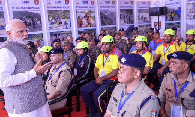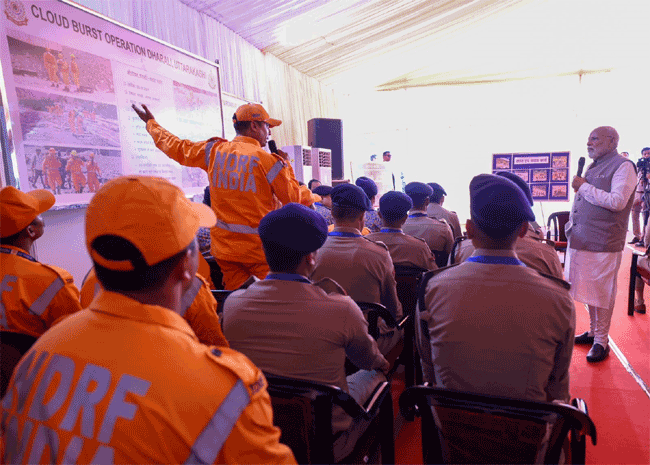 प्रधानमंत्री नरेंद्र मोदी ने धराली, थराली सहित राज्य के आपदा प्रभावित अन्य क्षेत्रों में संचालित राहत एवं बचाव अभियानों में एनडीआरएफ, एसडीआरएफ सहित राज्य सरकार के विभिन्न विभागों के प्रयासों की सराहना की और राहत बचाव कार्यों में जुटे राज्य व केन्द्र सरकार के संगठनों के कार्मिकों से भेंट कर उनके अनुभव साझा किए। प्रधानमंत्री ने आपदा पीड़ितों से भी मुलाकात कर उनका ढांढस बंधाने के साथ ही समुचित मदद का भरोसा दिलाया।