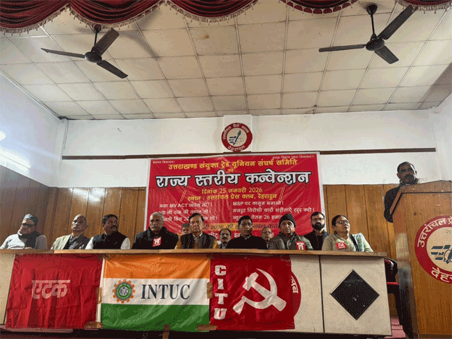 संयुक्त ट्रेड यूनियन संघर्ष समिति उत्तराखंड का एक दिवसीय कनवेंशन देहरादून में उत्तराखंड प्रेस क्लब सभागार में सम्पन्न हुआ। इस...