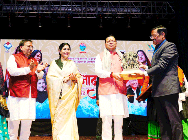 उत्तराखंड के मुख्यमंत्री पुष्कर सिंह धामी ने राज्य स्थापना की रजत जयंती के अवसर पर हिमालयन संस्कृति केंद्र गढ़ी कैंट देहरादून में आयोजित हिमालय निनाद उत्सव- 2025 में प्रतिभाग करते हुए कलाकारों का उत्साहवर्धन किया तथा संस्कृति के उत्थान और कलाकारों के हित में चार घोषणाएं की। (खबर जारी, अगले पैरे में देखिए)